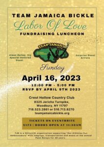 Team Jamaica Bickle, Inc. (TJB), the Jamaica, Queens-based philanthropist organization that provides hospitality service to Jamaican and Caribbean athletes at the illustrious Penn Relays Carnival, at Franklin Field Stadium, at the University of Pennsylvania in Philadelphia, is celebrating its 30th anniversary this month. The "Labor of Love” series of fundraisers is headlined by TJB’s “Labor of Love Luncheon – Black Tie & Sneakers Gala,” which will be held on April 14, 2024 at the Cresthollow Country Club, Woodbury, Long Island.